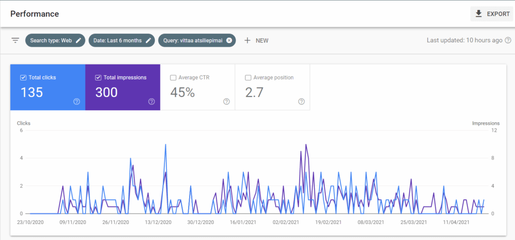 9 iš 10 pirkėjų, prieš pirkdami prekę, ieško atsiliepimų apie prekę arba pačią parduotuvę (šaltinis). Mūsų Google Search Console duomenimis, pagrindinė paieškos frazė, atvedanti organinį srautą į portalą, yra „x parduotuvės atsiliepimai„: